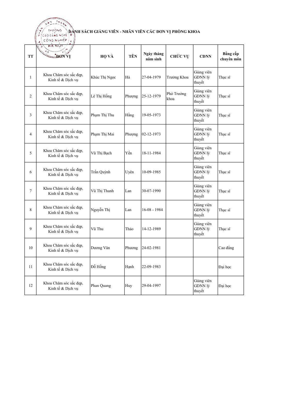 Trưởng khoa: ThS. Khúc Thị Ngọc Hà
