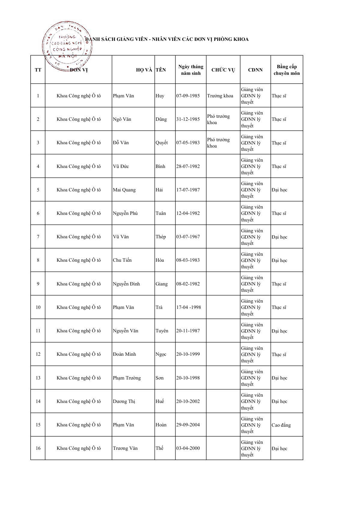 Giới thiệu chung về Khoa Công nghệ ô tô