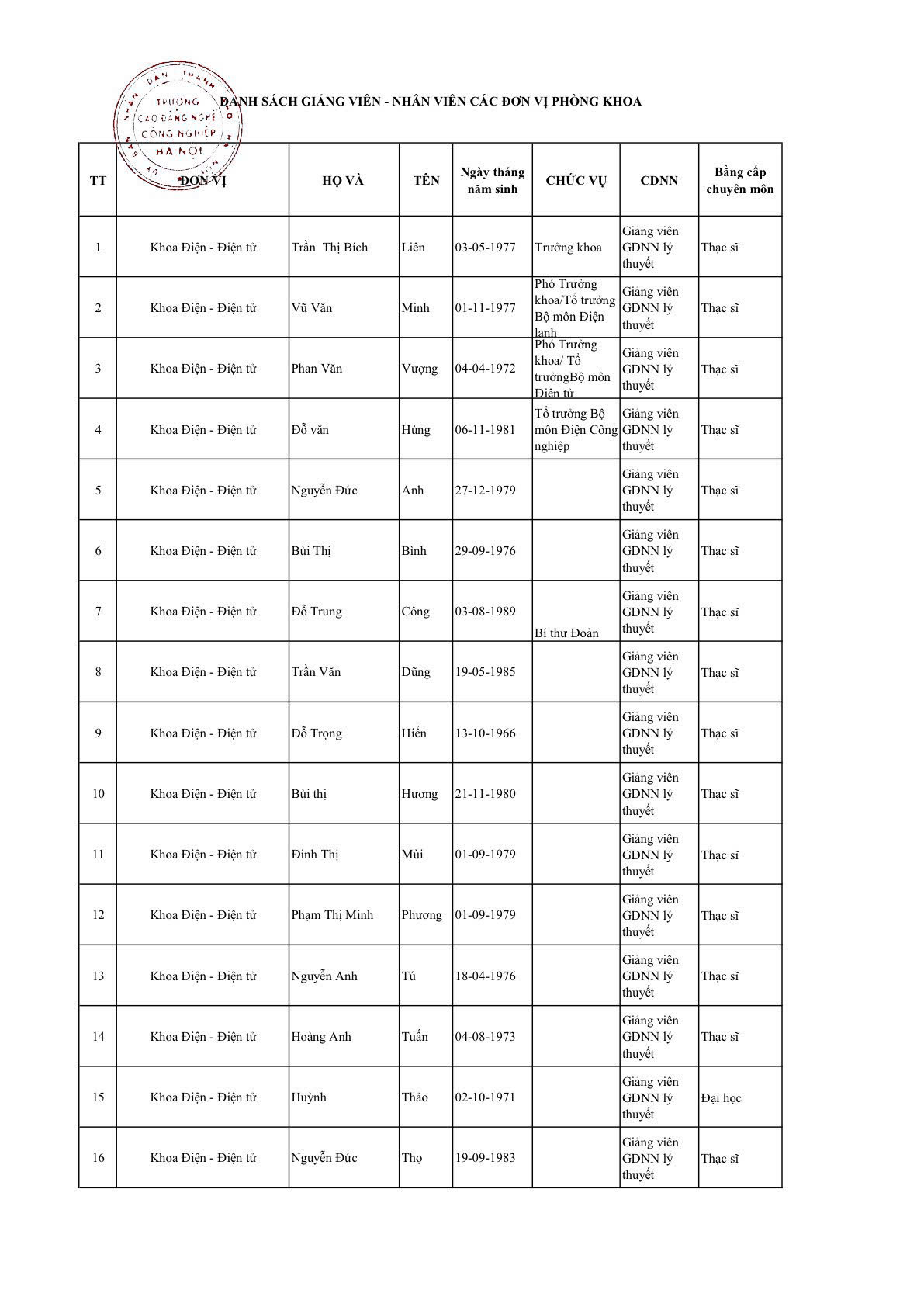 Trưởng khoa: Ths. Trần Thị Bích Liên
