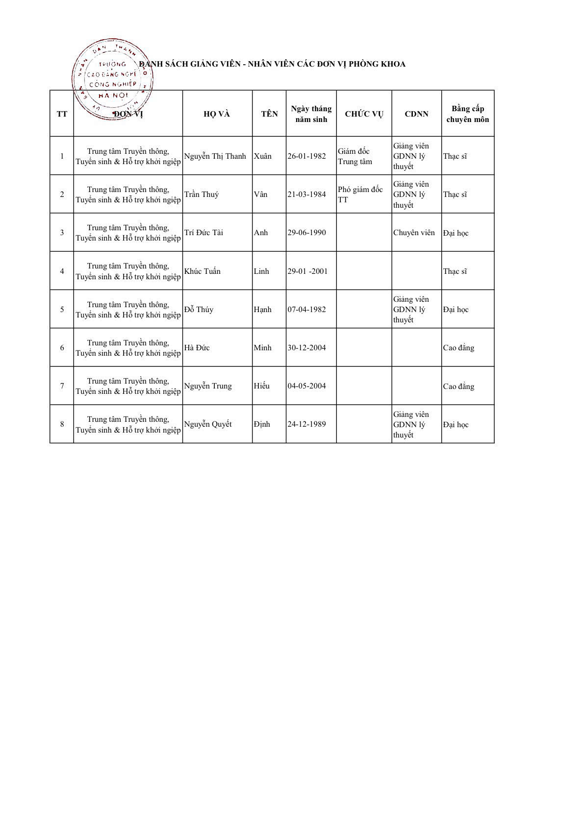 Địa chỉ: Trường Cao đẳng nghề Công nghiệp Hà Nội – 131 Thái Thịnh, Đống Đa, Hà Nội.