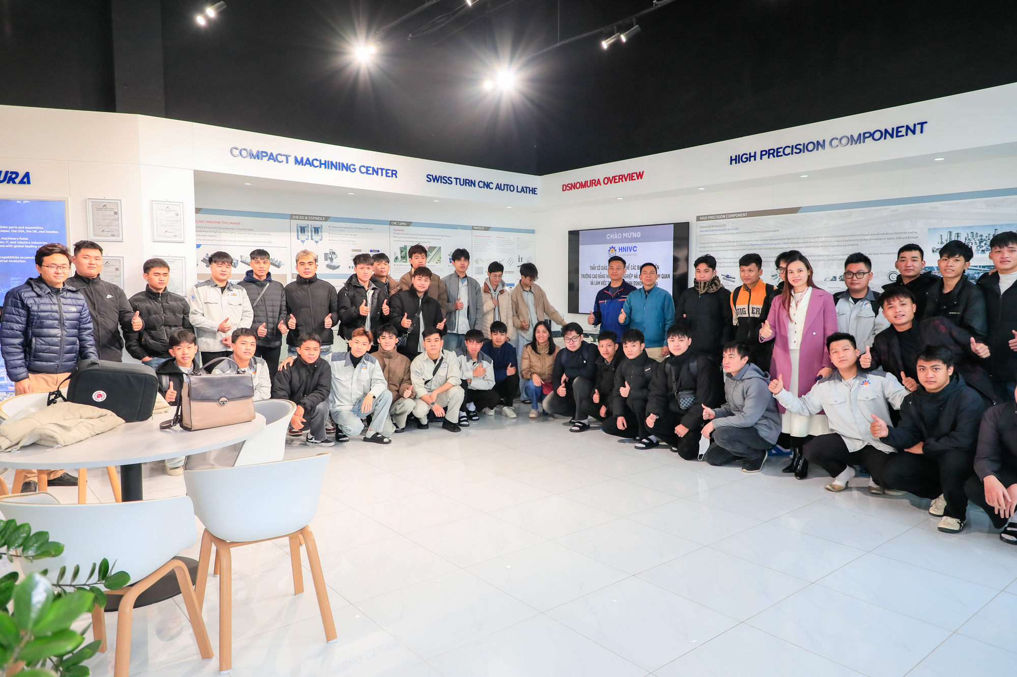 Hằng năm, DSNOMURA VINA phối hợp với HNIVC tổ chức tuyển chọn 20 sinh viên ngành Cơ khí – CNC tham gia chương trình đào tạo và học tập tại Hàn Quốc trong thời gian 6 tháng. Sau khi hoàn thành chương trình, sinh viên trở về làm việc chính thức tại doanh nghiệp với mức thu nhập trên 20 triệu đồng/tháng, cùng lộ trình phát triển nghề nghiệp rõ ràng.