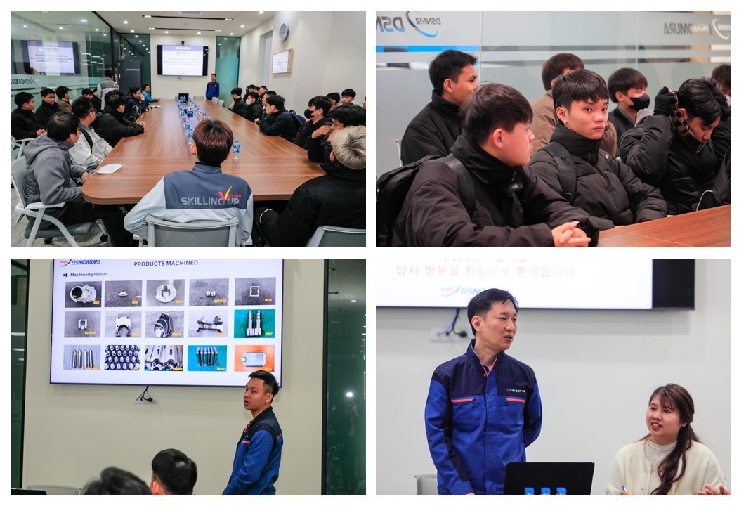 Bên cạnh hoạt động tuyển dụng, DSNOMURA VINA còn chú trọng đào tạo dài hạn cho người lao động. Sinh viên và nhân viên được bồi dưỡng ngoại ngữ, kỹ năng thiết kế, lập trình, sửa chữa thiết bị CNC, đồng thời thường xuyên được các chuyên gia từ trụ sở chính tại Hàn Quốc sang trao đổi, chuyển giao công nghệ và quy trình sản xuất hiện đại.
