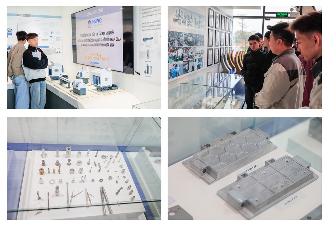 Ngày 6/1, đoàn sinh viên HNIVC đã có chuyến tham quan, trải nghiệm thực tế tại nhà máy DSNOMURA VINA. Tại đây, sinh viên được trực tiếp tìm hiểu môi trường sản xuất hiện đại, hệ thống máy CNC tiên tiến và quy trình quản lý theo tiêu chuẩn Hàn Quốc; đồng thời giao lưu, trao đổi với đội ngũ kỹ thuật đang làm việc tại doanh nghiệp.