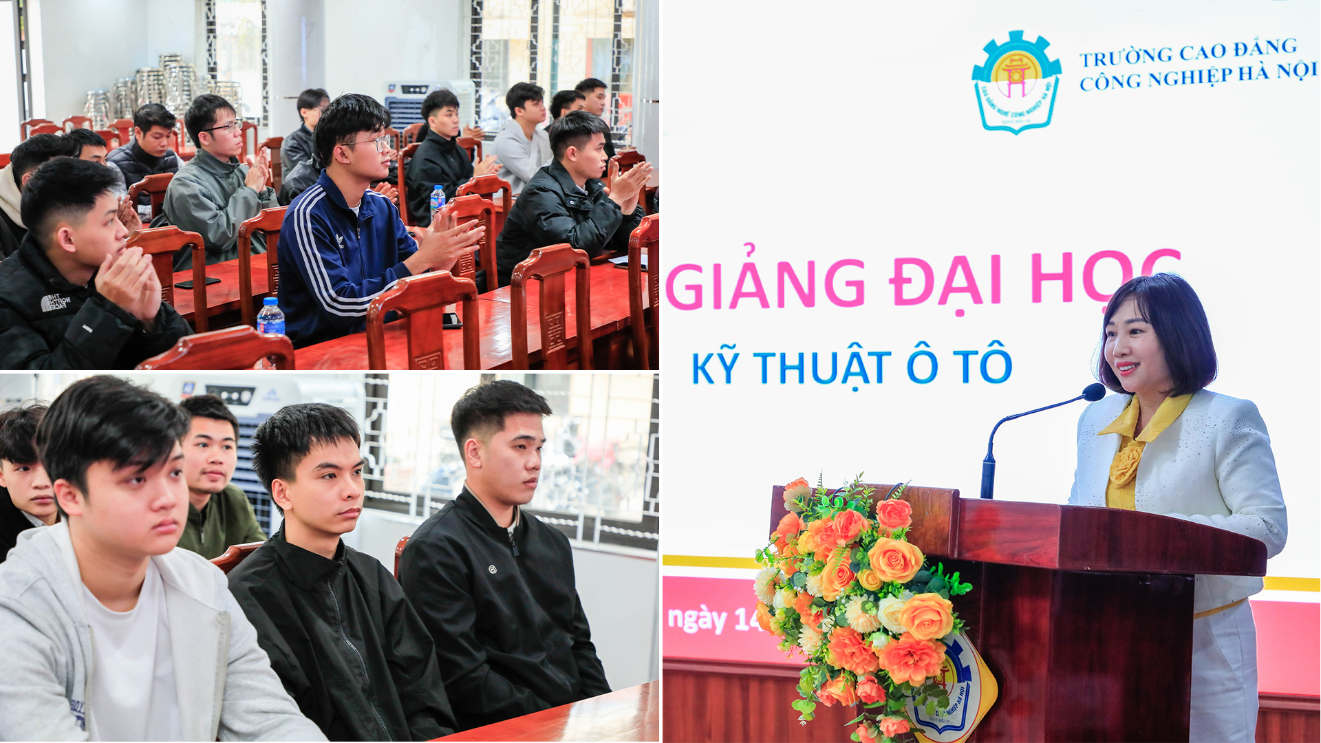 Sáng ngày 14/12 Trường Cao đẳng Nghề Công nghiệp Hà Nội (HNIVC) đã long trọng tổ chức Lễ khai giảng lớp Liên thông từ Cao đẳng lên Đại học – ngành Công nghệ Ô tô, chương trình liên kết đào tạo giữa HNIVC và Đại học Bách khoa Hà Nội, theo hình thức vừa làm vừa học.