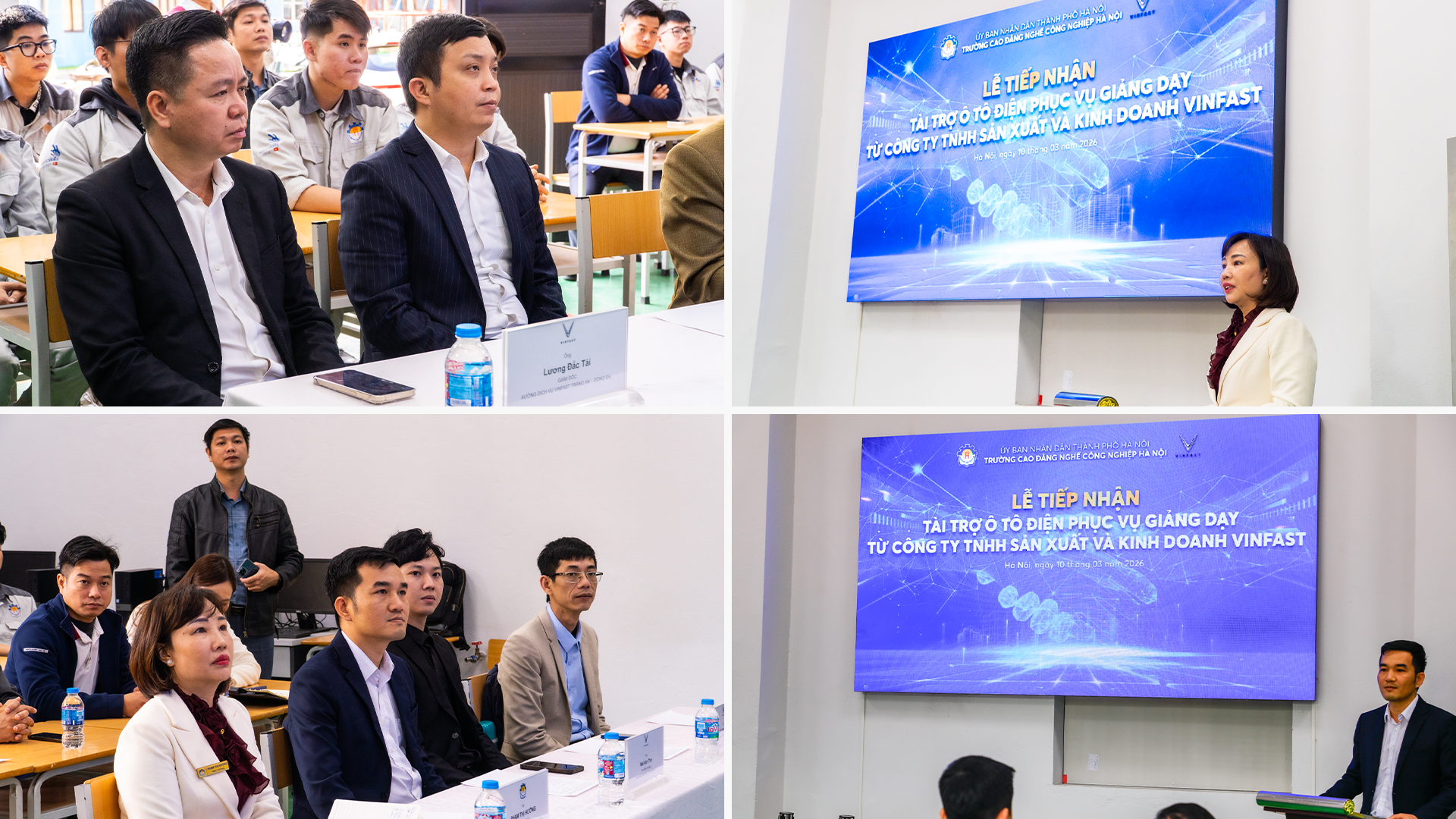 Đại diện Nhà trường, Cô Phạm Thị Hường – Hiệu trưởng Trường Cao đẳng Nghề Công nghiệp Hà Nội bày tỏ sự trân trọng trước sự quan tâm và hỗ trợ của VinFast đối với hoạt động đào tạo của Nhà trường. Theo bà, sự đồng hành của doanh nghiệp không chỉ giúp nâng cao chất lượng giảng dạy mà còn góp phần xây dựng mô hình đào tạo gắn kết giữa nhà trường và thực tiễn sản xuất, giúp sinh viên đầu ra có ngay việc làm đáp ứng tốt được nhu cầu của thị trường lao động.