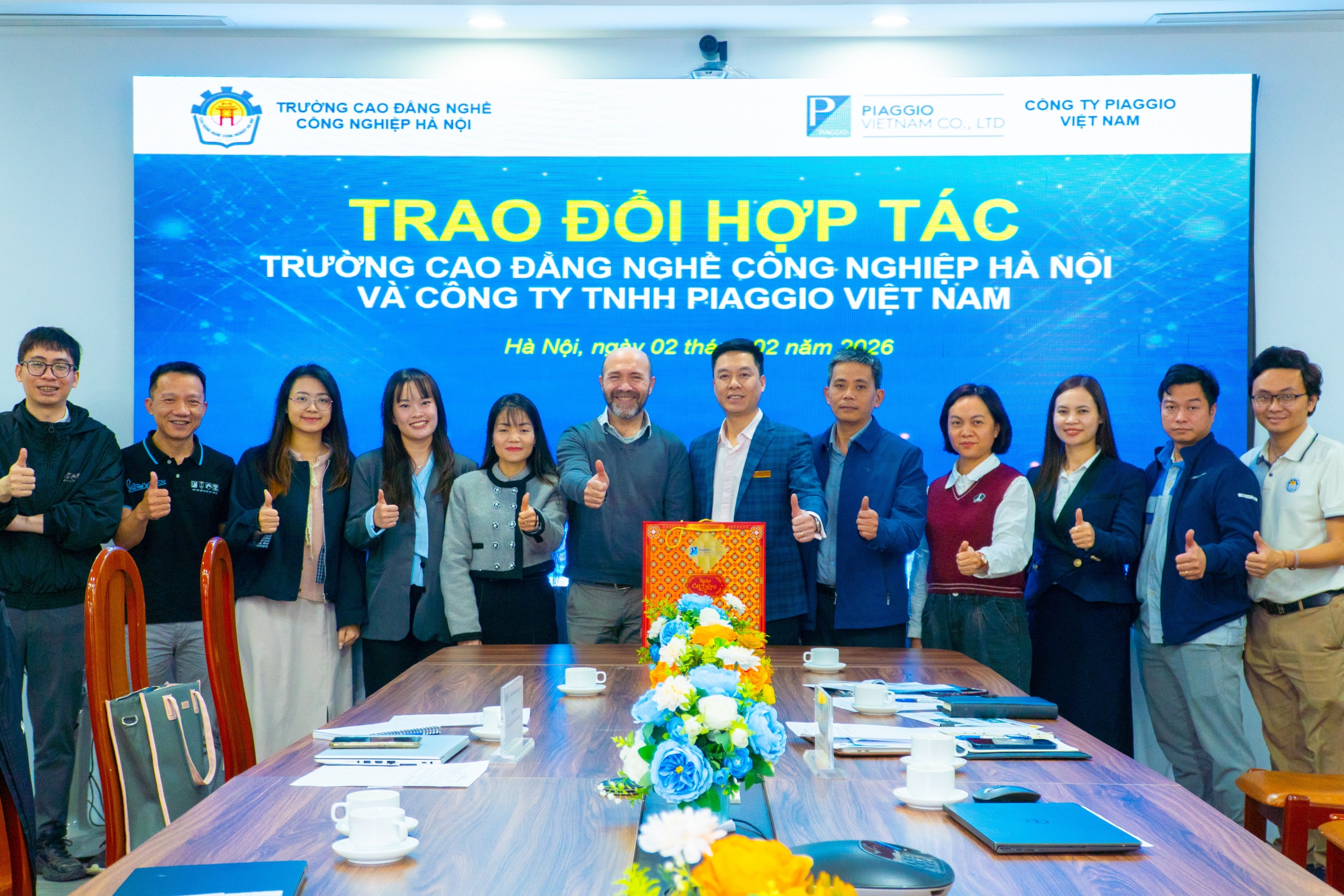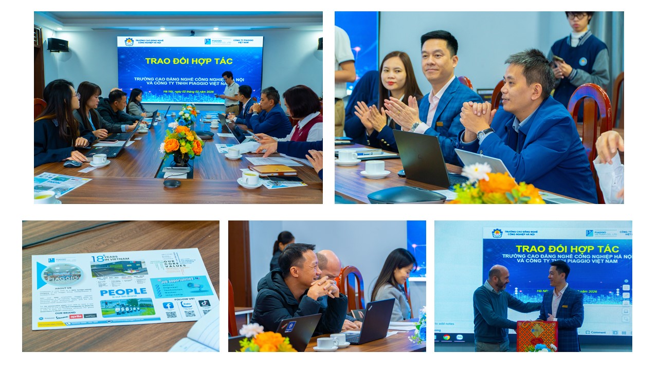 Nhằm tăng cường gắn kết giữa cơ sở giáo dục nghề nghiệp và doanh nghiệp sản xuất công nghiệp hàng đầu, ngày 02/02/2026, Trường Cao đẳng Nghề Công nghiệp Hà Nội (HNIVC) đã tổ chức buổi trao đổi, làm việc và thống nhất định hướng hợp tác với Công ty TNHH Piaggio Việt Nam – doanh nghiệp 100% vốn Ý, có nhà máy và trung tâm R&D tại Việt Nam.